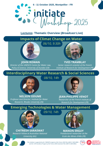 INITIATE for PhD is a new platform aiming at strengthening the emergence of robust international, intercultural and interdisciplinary network of PhD candidates working on water related issues. It gathers PhD candidates and their mentors from 12 universities across the world, among those three UNESCO International Centres (Delft, Dundee, Montpellier). It is meant to provide to participating PhD candidates opportunities to exchange with PhD candidates from other universities, who are struggling with similar issues to develop interdisciplinary and transdisciplinary knowledge. We expect a double benefit from the platform: on the short term, a decentred perspective for each PhD candidate on his/her own PhD subject; and on the long term a robust network beyond PhD to exchange experience on water issues and build tomorrow successful consortia to face global change water related issues. Beyond these direct benefits from interactions with PhD candidates and their mentors, participants to the platform will also benefit from the connections of all the universities participating in the platform. If you are interested in a further international career, you will be put in touch through the platform with academics from all over the world and practitioners from international institutions and major businesses involved in mitigating and adapting water management to global changes. The three UNESCO centres, but also the universities’ connections with private and public entities will be mobilised in the events dedicated to the platform.